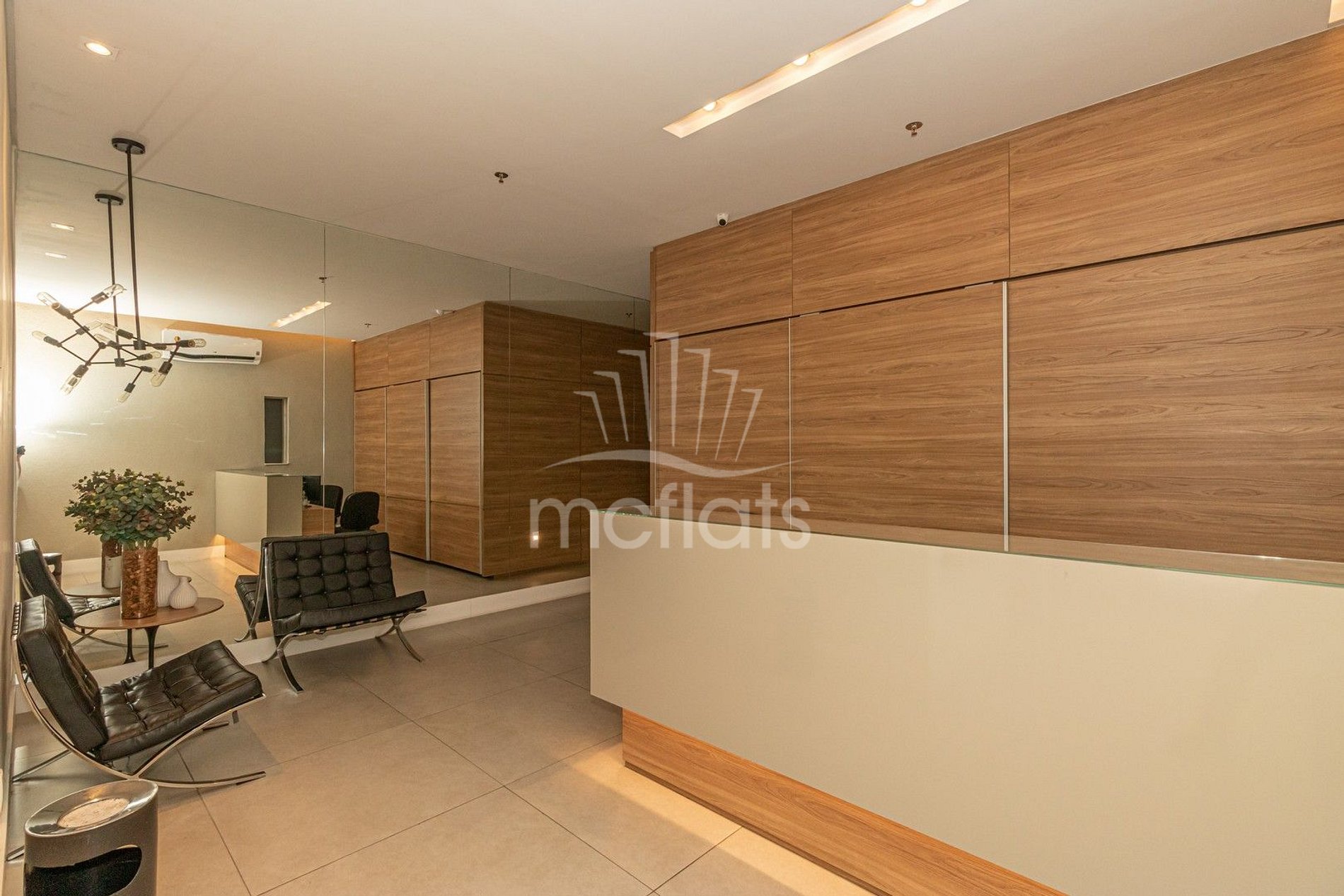 O flat possui recepção e segurança 24hs, central telefônica, 01 vaga de garagem coberta por unidade, lavanderia, sala de ginástica, piscina coberta e aquecida; e saunas.