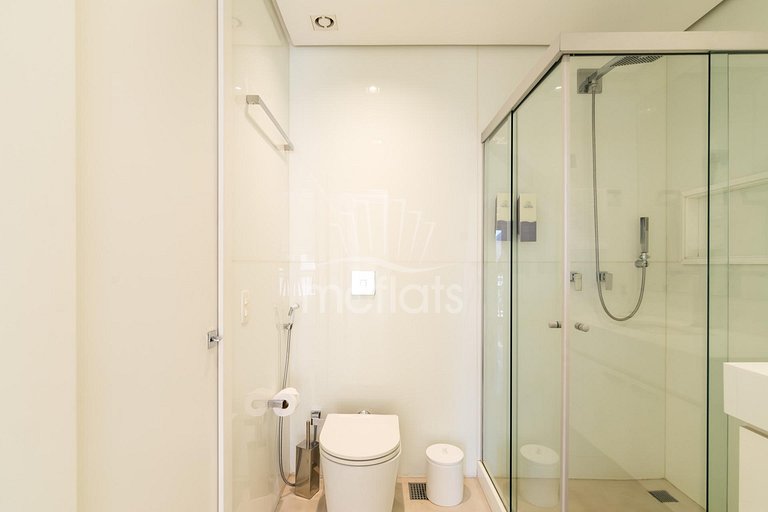 Apartamento de 55m² com varanda, quarto, sala, banheiro e cozinha, Tv por assinatura, Internet, cofre individual, microondas, geladeira, fogão e ar condicionado. Mobiliado e equipado com utensílios de cozinha.